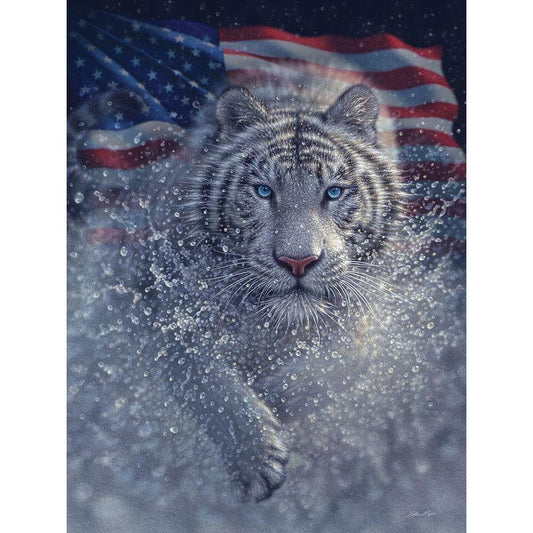 White Tiger America Gold Ornate Wood Framed Art Print with Double Matting by Bogle, Collin