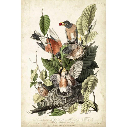 Audubons American Robin Gold Ornate Wood Framed Art Print with Double Matting by Audubon, John James