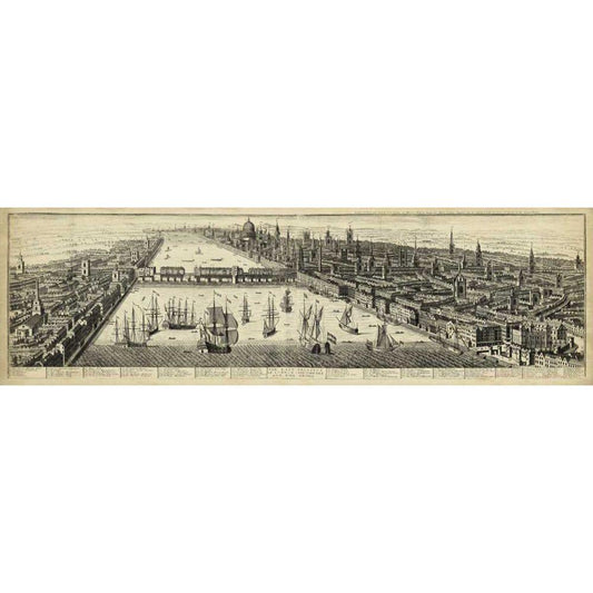 The West Prospect of London Gold Ornate Wood Framed Art Print with Double Matting by Unknown