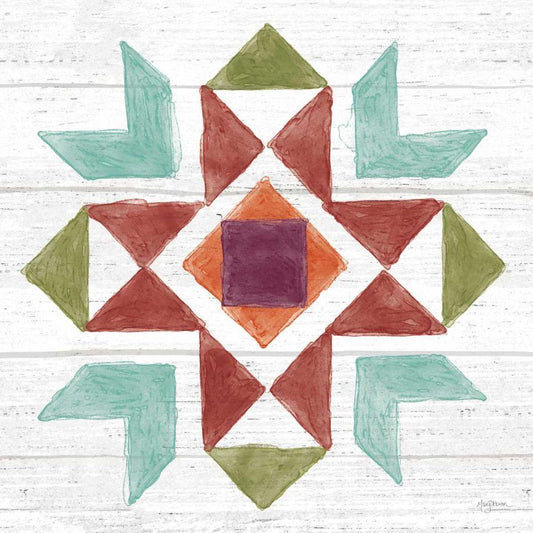 Folk Lodge Bird Red Navy Gold Ornate Wood Framed Art Print with Double Matting by Mullan, Michael