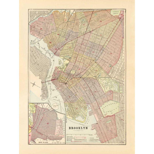 Map of Brooklyn Gold Ornate Wood Framed Art Print with Double Matting by Wild Apple Portfolio