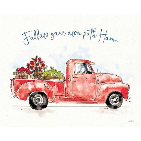 Americana Mood VIII Red Truck Blue Gold Ornate Wood Framed Art Print with Double Matting by Tavoletti, Anne