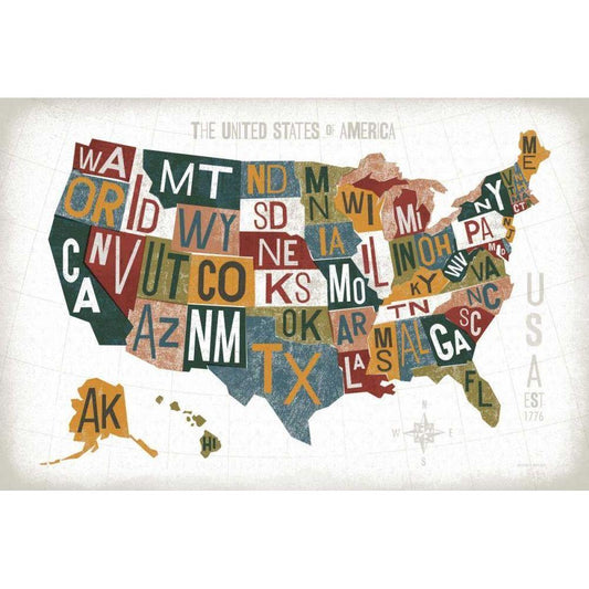 Letterpress USA Map Warm Gold Ornate Wood Framed Art Print with Double Matting by Mullan, Michael
