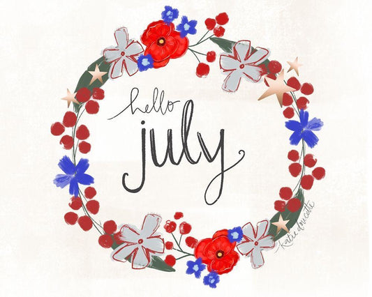 Hello July White Modern Wood Framed Art Print with Double Matting by Doucette, Katie