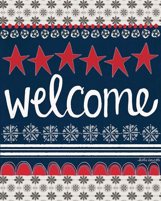 Patriotic Welcome White Modern Wood Framed Art Print with Double Matting by Doucette, Katie