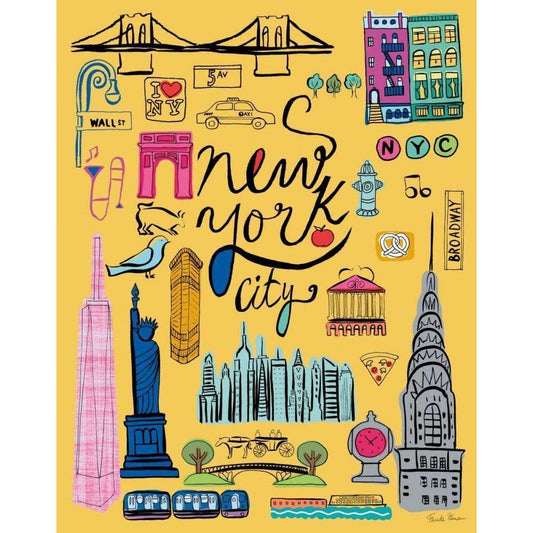 Travel NYC Gold Ornate Wood Framed Art Print with Double Matting by Zaman, Farida