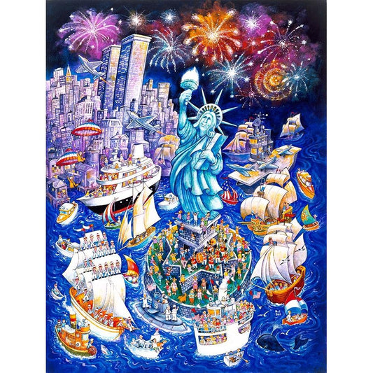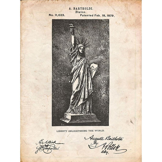 PP474-Vintage Parchment Statue Of Liberty Poster Gold Ornate Wood Framed Art Print with Double Matting by Borders, Cole