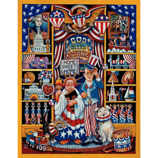 God Bless America Gold Ornate Wood Framed Art Print with Double Matting by Bell, Bill