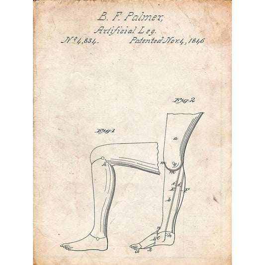 PP706-Vintage Parchment Artificial leg patent 1846 Wall Art Poster Gold Ornate Wood Framed Art Print with Double Matting by Borders, Cole