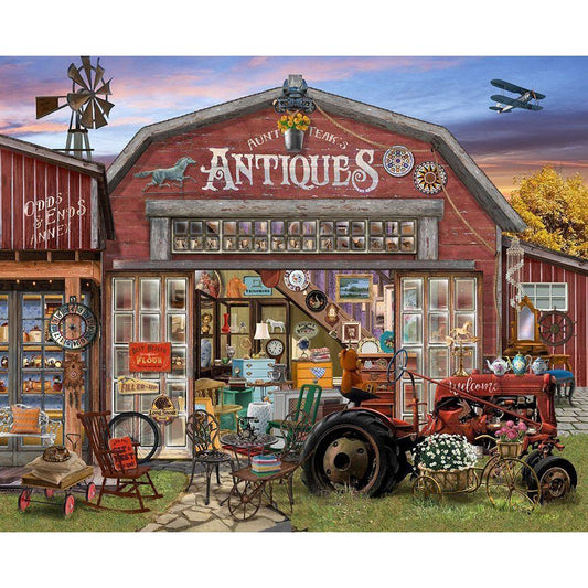 Aunt Teaks Antique Store Gold Ornate Wood Framed Art Print with Double Matting by Bigelow Illustrations- Exclusive