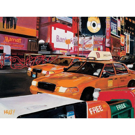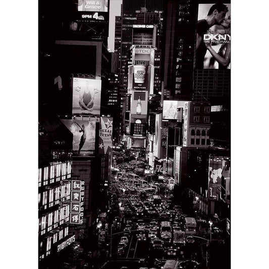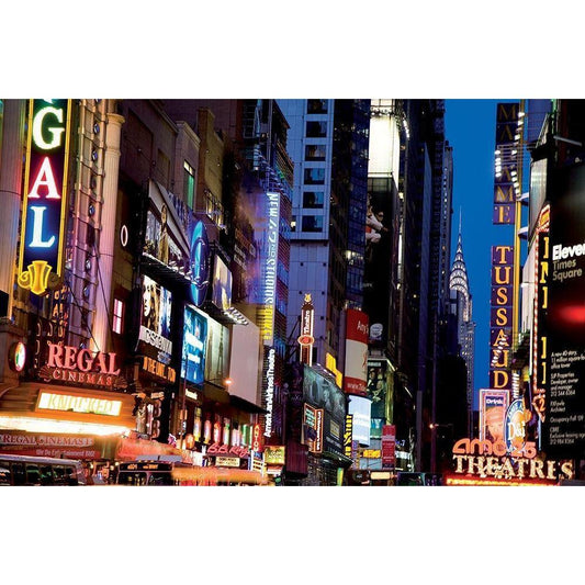 Times Square at Night Black Modern Wood Framed Art Print by Setboun, Michel