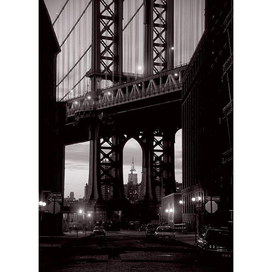 Manhattan Bridge Black Modern Wood Framed Art Print by Peyret, Eric