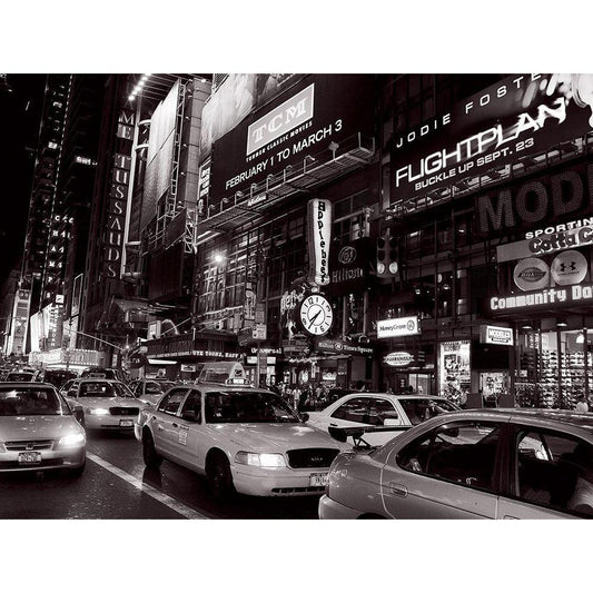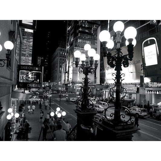 42nd Street at night Black Modern Wood Framed Art Print by Setboun, Michel