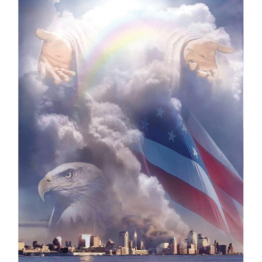 Eagle And Flaf Black Modern Wood Framed Art Print by Unknown