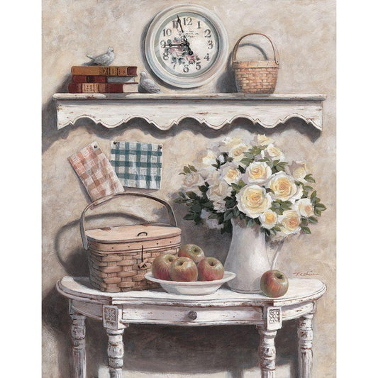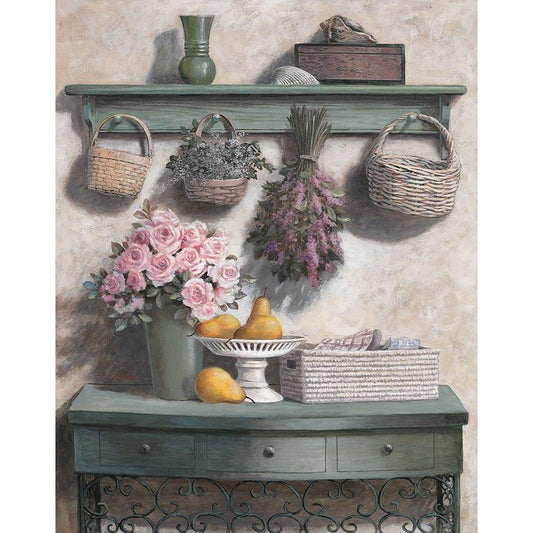 Flowers and Fruit Black Modern Wood Framed Art Print by Unknown