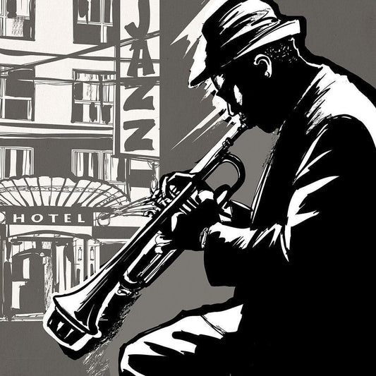 Smooth Jazz Black Modern Wood Framed Art Print by Anonymous