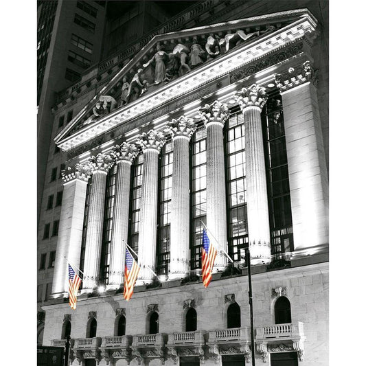 New York Stock Exchange at Night (sm) Black Modern Wood Framed Art Print by Maier, Phil