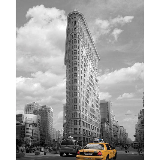 Yellow Cabs at Flatiron Building Black Modern Wood Framed Art Print by Maloratsky, Igor