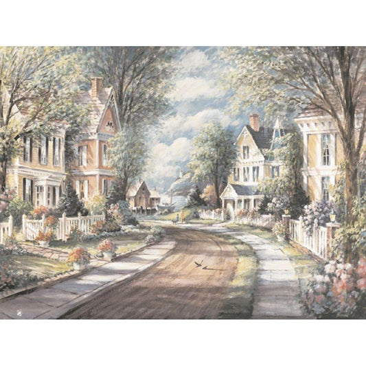 Victorian Street Black Modern Wood Framed Art Print by Unknown