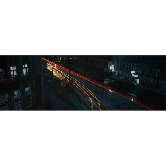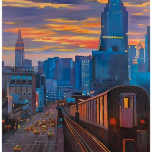 Sunset Over the Subway in New-York Black Modern Wood Framed Art Print by Atelier B Art Studio