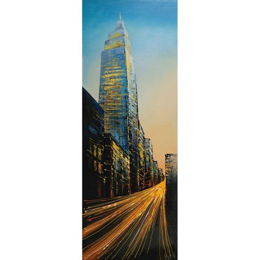 In the Street of Empire State Building Black Modern Wood Framed Art Print by Atelier B Art Studio