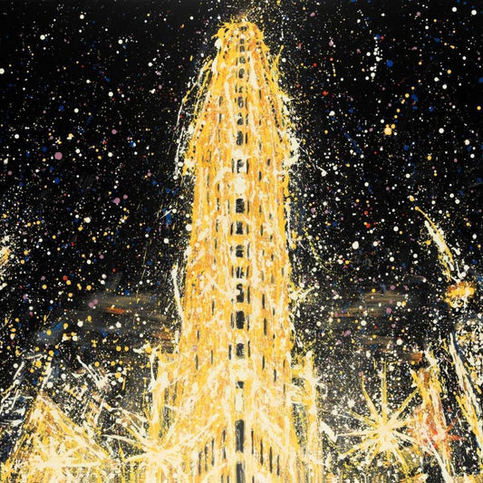 Manhattan view of the Empire State Building Black Modern Wood Framed Art Print by Atelier B Art Studio