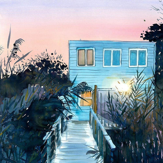 BEACH HOUSE Black Modern Wood Framed Art Print by Atelier B Art Studio