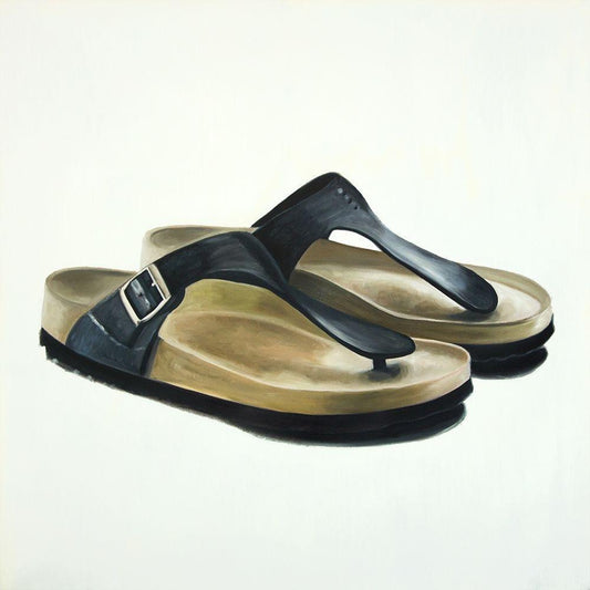 SANDALS Black Modern Wood Framed Art Print by Atelier B Art Studio