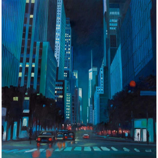 Evening in Manhattan, New-York Black Modern Wood Framed Art Print by Atelier B Art Studio