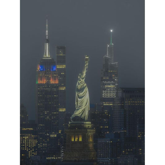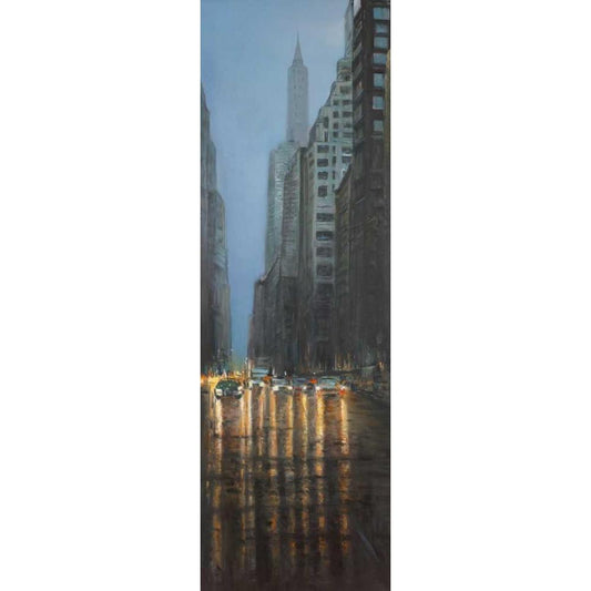 Evening in the Streets of New-York City Black Modern Wood Framed Art Print by Atelier B Art Studio