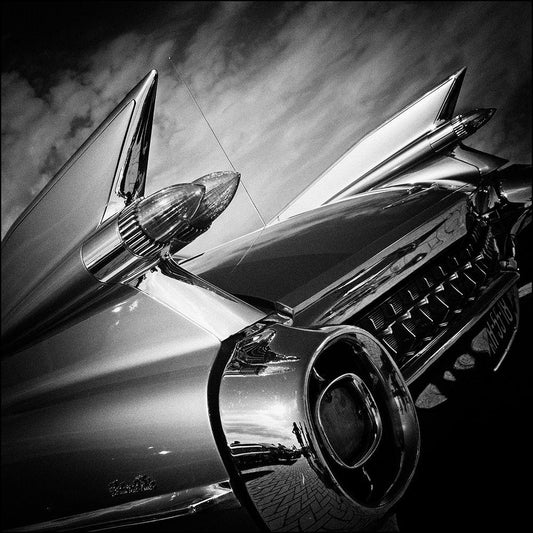 American Classic Car Belvedere 1960 Tail Fin Black Modern Wood Framed Art Print by Gube, Beate