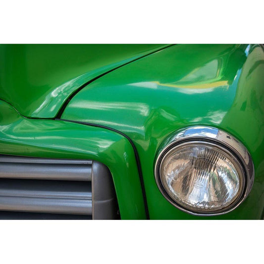 Detail of green classic American GMC truck in Trinidad-Cuba Black Modern Wood Framed Art Print by Miglavs, Janis