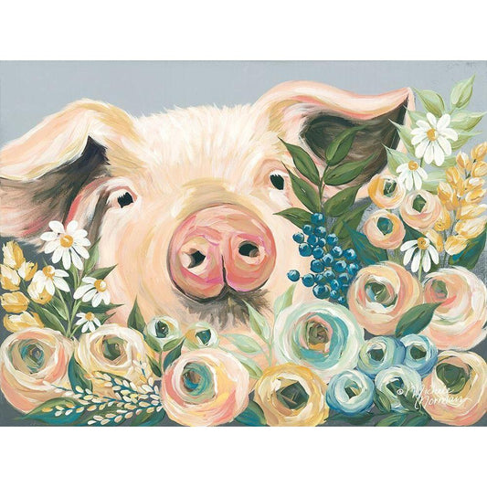 Pig in the Flower Garden Black Modern Wood Framed Art Print by Norman, Michele