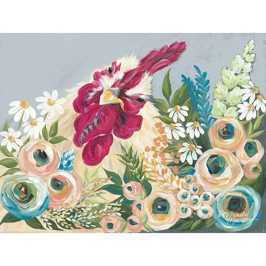 Hen in the Flower Garden Black Modern Wood Framed Art Print by Norman, Michele