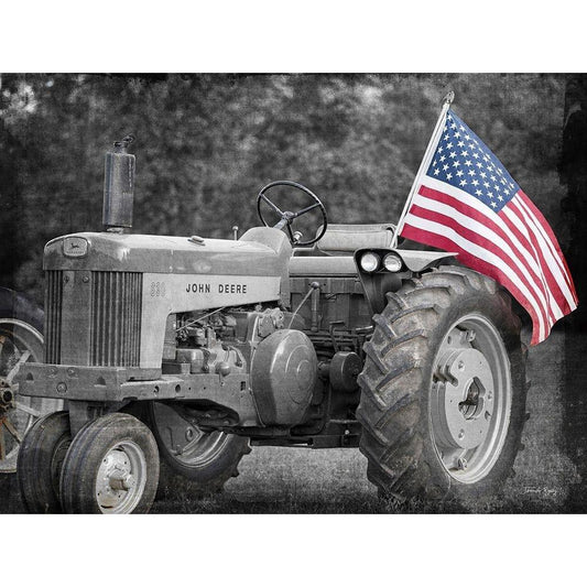 Tractor with American Flag Black Modern Wood Framed Art Print by Rigsby, Jennifer