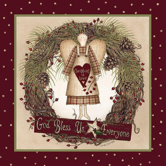 Folk Angel Christmas Wreath Black Modern Wood Framed Art Print by Spivey, Linda