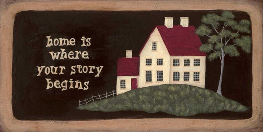Home is Where Stories Begin White Modern Wood Framed Art Print with Double Matting by Moulton, Jo