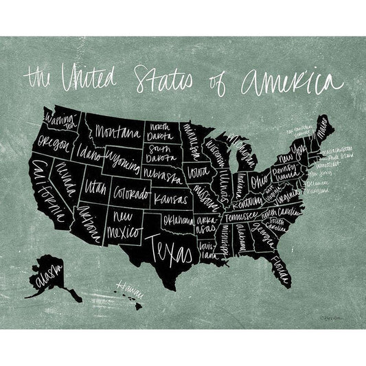 Chalk USA Map Black Modern Wood Framed Art Print by Lady Louise Designs