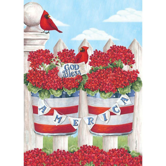 Patriotic Geraniums Black Modern Wood Framed Art Print by Kater, Diane