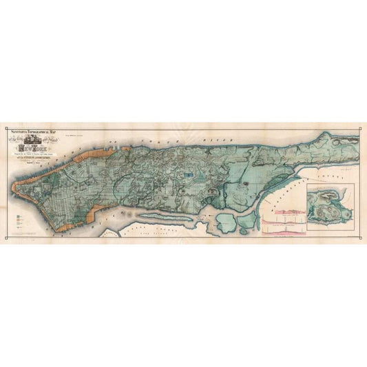 Map of Manhattan Island, 1865 Black Modern Wood Framed Art Print by Anonymous