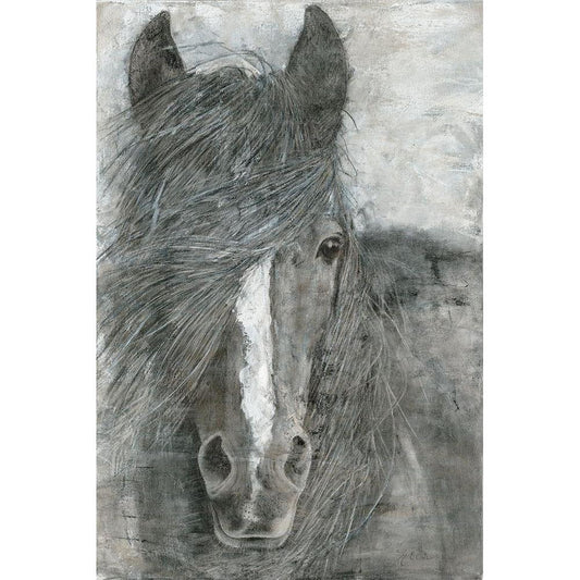 Horse in the Wind Black Modern Wood Framed Art Print by Cusson, Marie Elaine