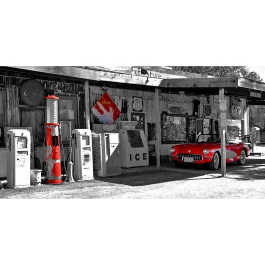 Vintage gas station on Route 66 Black Modern Wood Framed Art Print by Ratsenskiy, Vadim