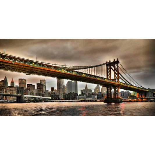 Manhattan Bridge and New York City Skyline, NYC Black Modern Wood Framed Art Print by Ratsenskiy, Vadim