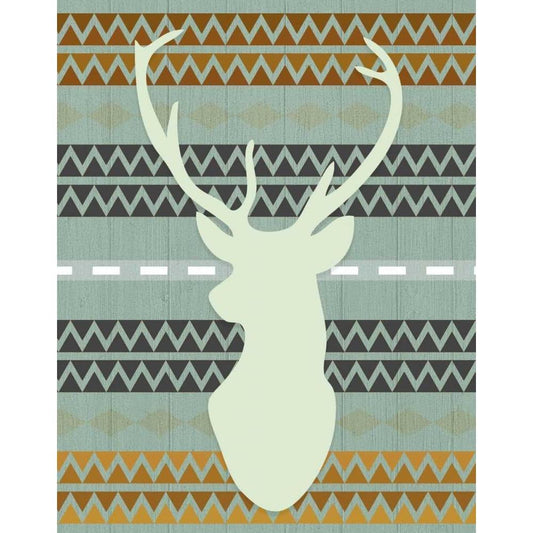 Green Tribal Deer Head on Gray Black Modern Wood Framed Art Print by Moss, Tara
