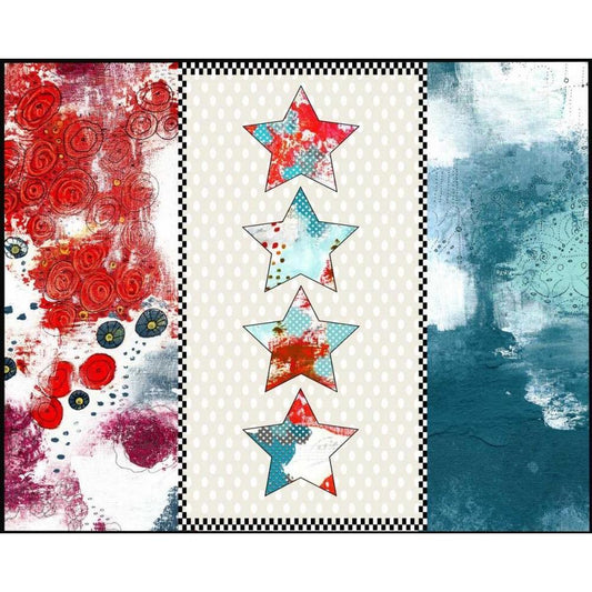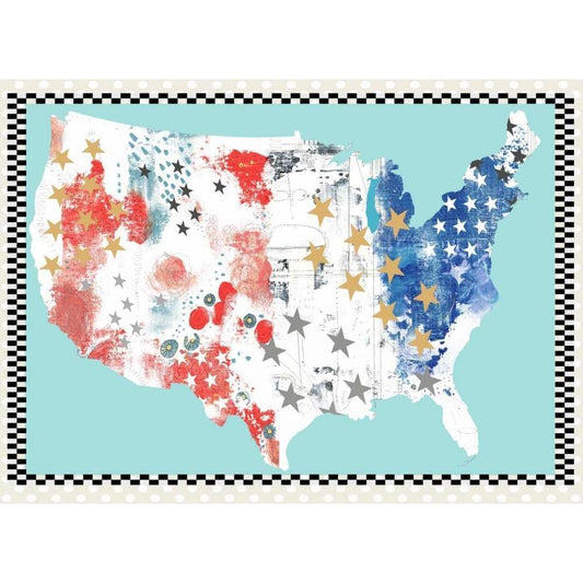 America Blue Red Stars Black Modern Wood Framed Art Print by Moss, Tara