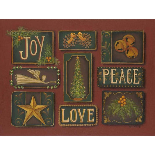 Joy Peace Love Black Modern Wood Framed Art Print by Lewis, Kim