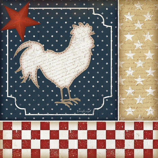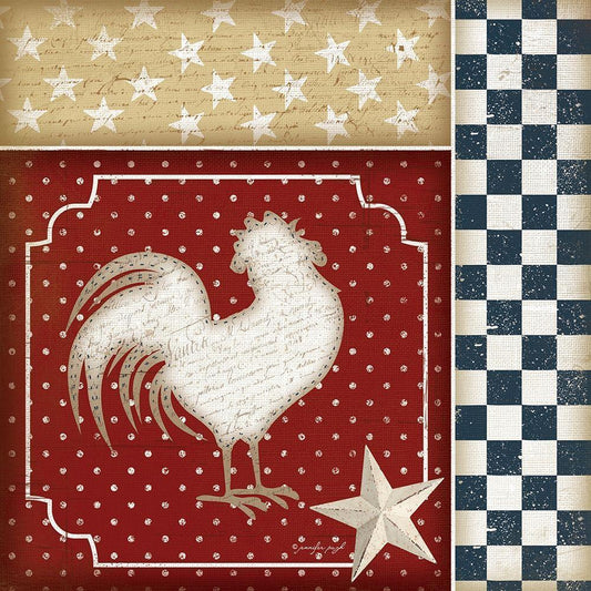 Red White and Blue Rooster XII Black Modern Wood Framed Art Print by Pugh, Jennifer