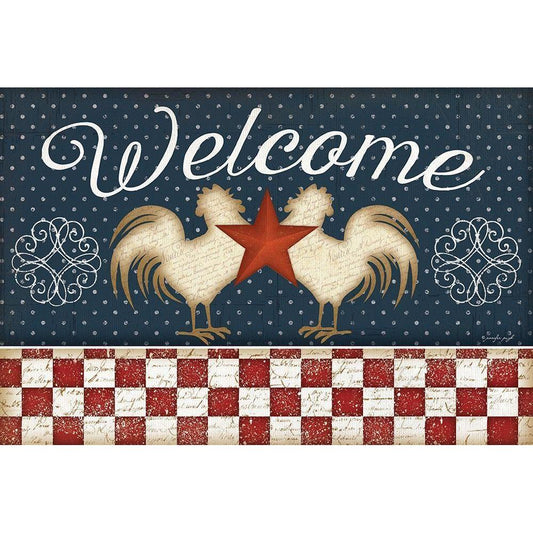Red White and Blue Rooster X Black Modern Wood Framed Art Print by Pugh, Jennifer