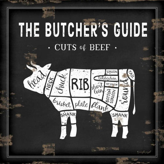 Butchers Guide Cow Black Modern Wood Framed Art Print by Pugh, Jennifer
