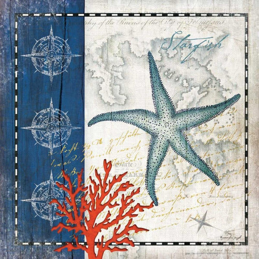 Coastal Blue Starfish Black Modern Wood Framed Art Print by Pugh, Jennifer